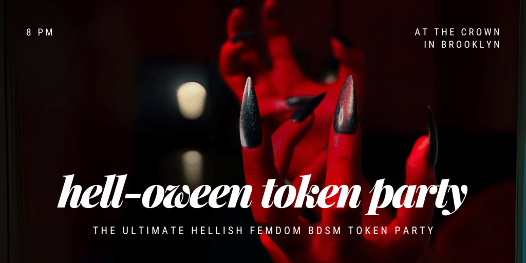 Femdom Hell-oween Token Party is a Halloween themed BDSM play-party with tokens, femdom stations, and lots of kinky fun.